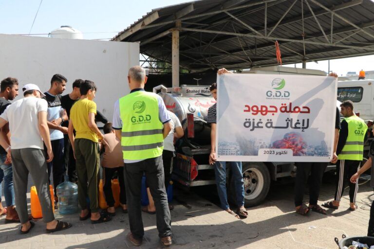 غزي دستك تواصل توفير مياه شرب للنازحين في مدارس الإيواء