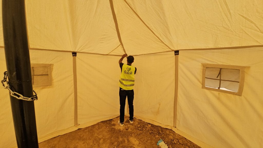 بفضل الله ثم عطاءاتكم الكريمة ، ضمن حملة غوثك نبضهم تمكن فريقنا المتواجد في غزة من توزيع الخيام التي تم تجهيزها في مصر على الأسر النازحة في منطقة خانيونس .