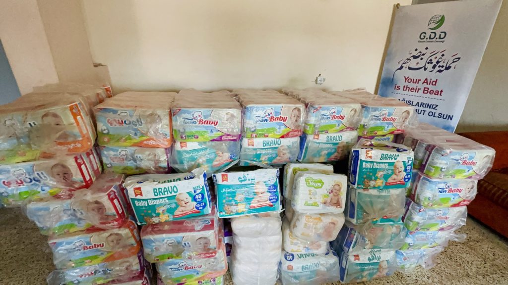 By the grace of Allah, our team on the ground has been able to distribute milk and diapers to displaced families in shelters.